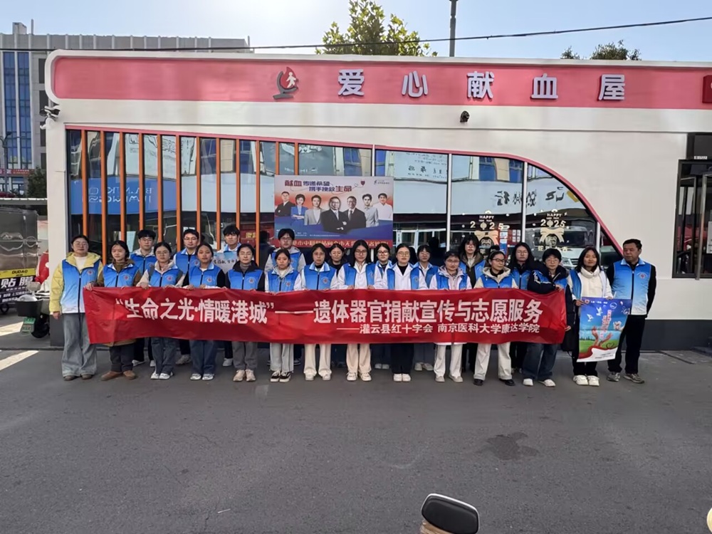 11月29日,南京医科大学康达学院基础医学部联合海州区红十字会和灌云县红十字会开展“生命之光情暖港城”遗体器官捐献宣传与志愿服务活动。基础医学部遗体器官捐献宣传志愿队20余名师生与海州区和灌云县红十字会工作人员共同参与。