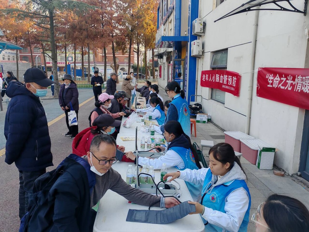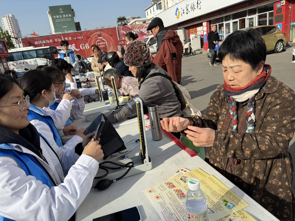 在灌云县利群广场和海州区海宁小区活动现场,志愿者们分工有序、配合默契。一部分同学手持宣传页,主动走向过往市民,细致讲解献血、遗体与器官捐献的相关政策、登记方式,并解答常见疑问,帮助公众消除认知误区。另一部分志愿者则为前来参与活动的老人测量血压、血糖,结合自身医学知识,用亲切易懂的语言讲解健康常识,叮嘱老人们注意季节更替与日常保健。现场还设有急救知识科普环节,志愿者们通过模拟演示,向路人传授心肺复苏、海姆立克急救法等实用技能,吸引不少市民驻足学习和互动。