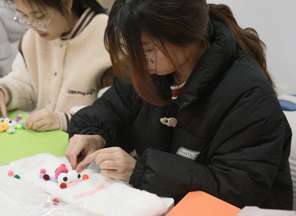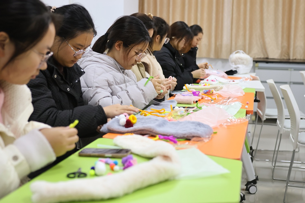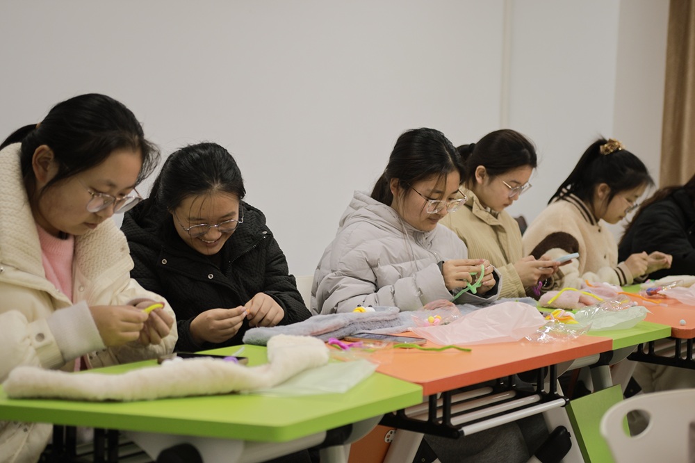 本次活动巧妙融合美育实践与心理关怀,不仅锻炼了学生的动手能力与创造力,也为大家构建了一个情感表达与心灵沟通的平台,进一步增强了集体凝聚力,提升了心理疗愈能力,为冬日校园增添了一抹温暖而明亮的色彩。