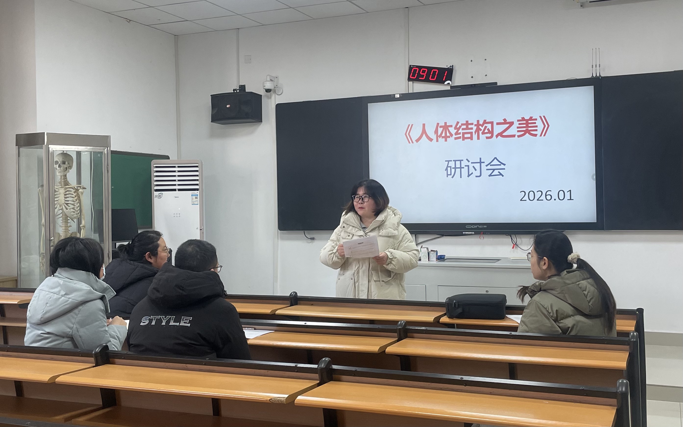 1月9日上午,人体解剖学系与连云港师范学院艺术学博士潘淑娴老师共同召开《人体结构之美》选修课程建设研讨会,围绕解剖学与美育深度融合展开专题研讨,为新学期课程开设做好充分准备。会议由曲肖风老师主持,解剖学系张维副主任出席指导。